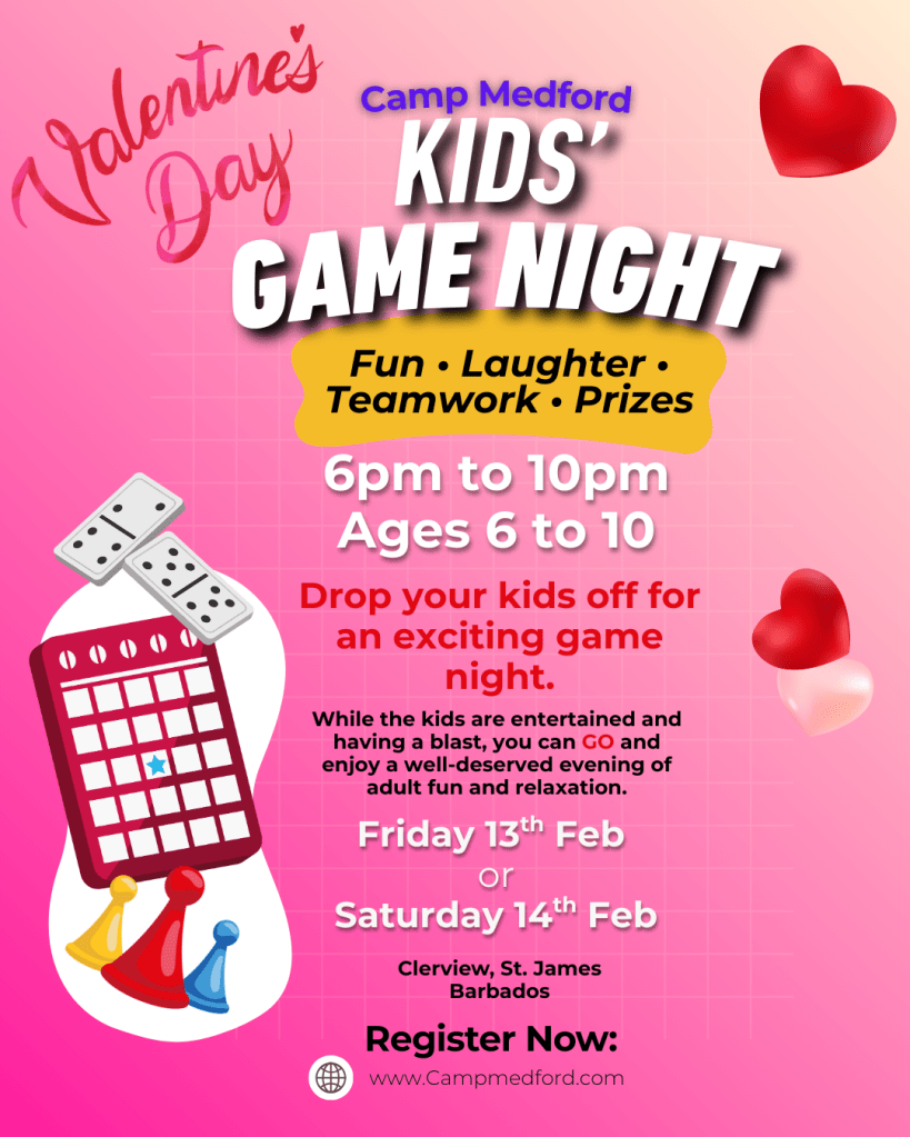 In Barbados from 6 to 9 PM, drop your kids off for an exciting game night packed with fun activities, delicious Caribbean snacks, and engaging games inspired by the vibrant culture of Barbados.